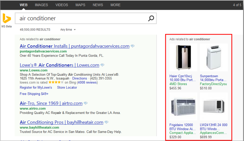 3)必應(yīng)產(chǎn)品列表廣告